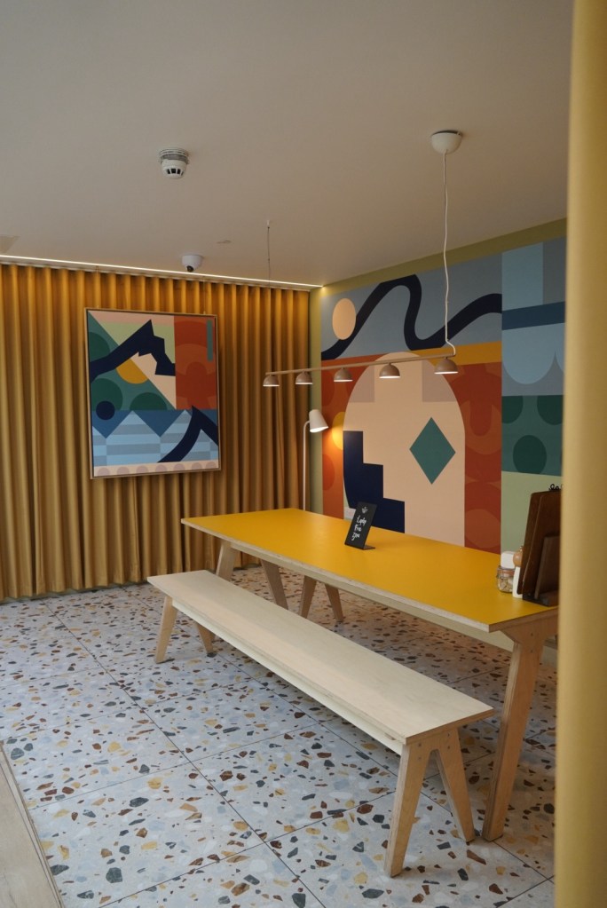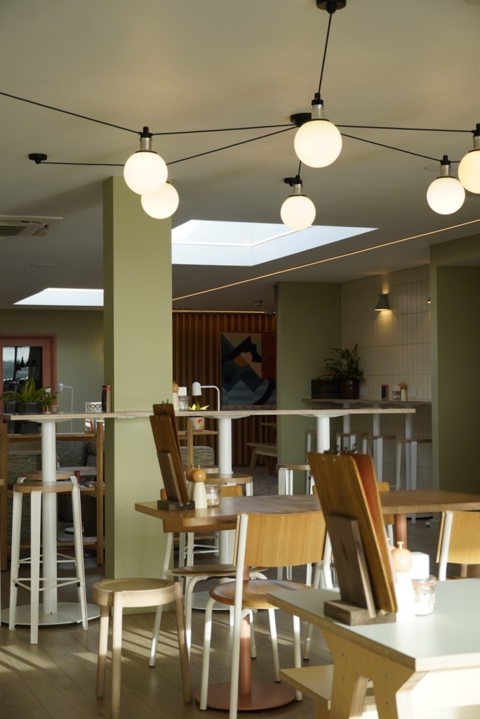 When we arrived the hotel felt busy, but not in a bad way. The cafe was full of locals, there was a mum and baby session, parents in the games room, people meeting after walks and being dog friendly lots of people on dog walks. We grabbed ourselves a table, my husband set up to do a little bit of work (they are freelancer friendly too) and we had an amazing coffee (parents) and lunch for the kids (pancakes)!